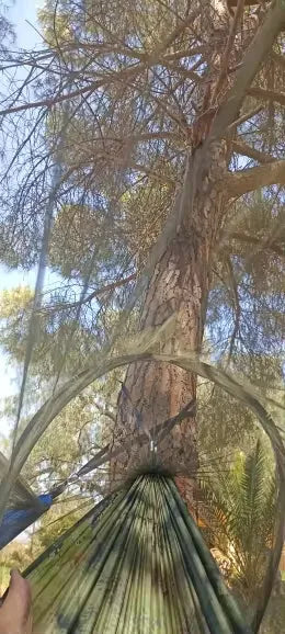 Aventură în sălbăticie cu încredere. Hamacul nostru oferă combinația supremă de confort, rezistență și protecție. Cu țesătura sa de parașută de înaltă rezistență și plasa de țânțari integrată, poți dormi liniștit sub stele fără mușcături enervante de țânțari. Ia-l oriunde mergi, datorită designului său ușor și sacului de depozitare practic. Proiectat pentru toți aventurierii care iubesc libertatea și frumusețea naturii.